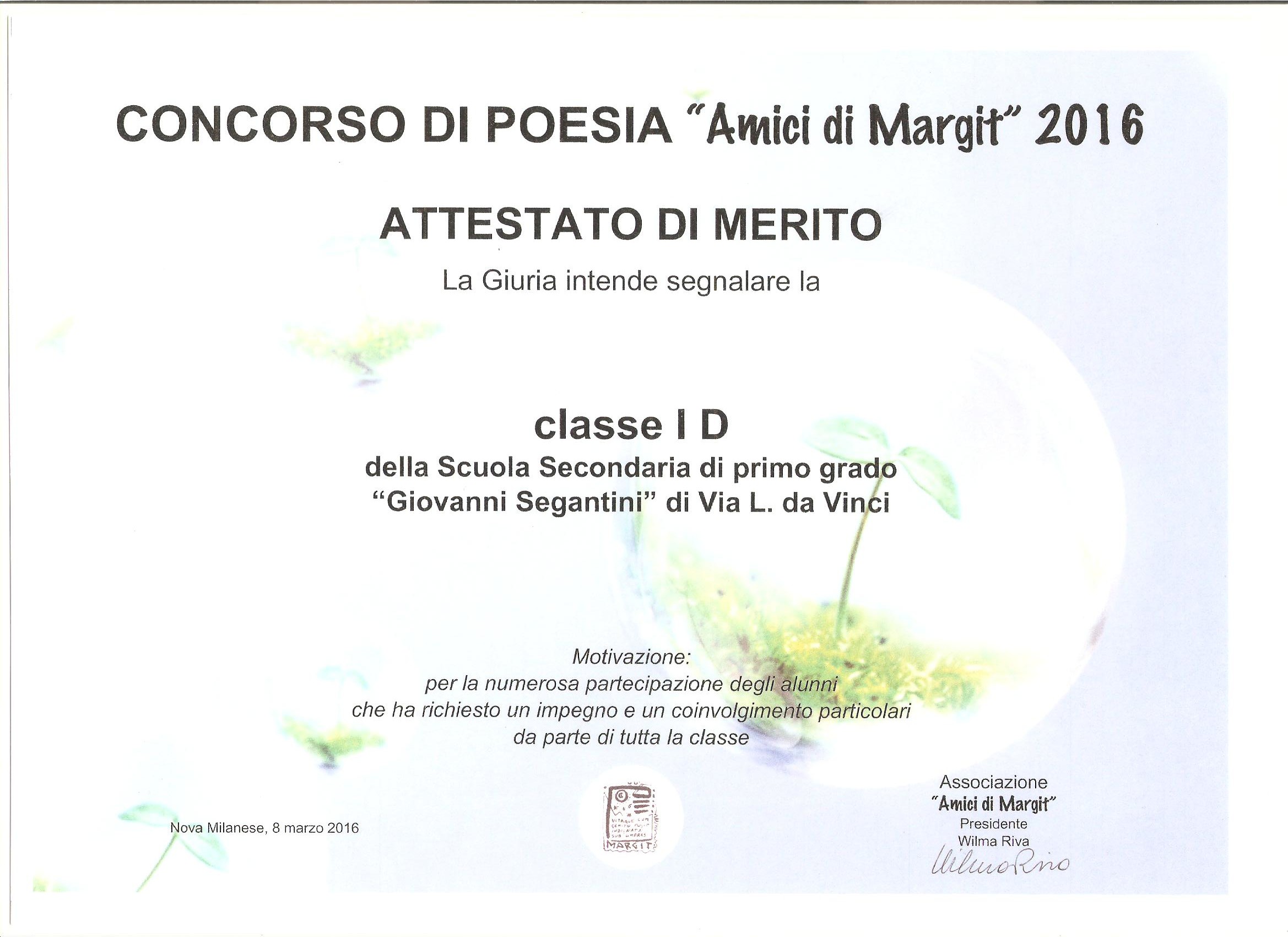 attestato concorso poesia 1D